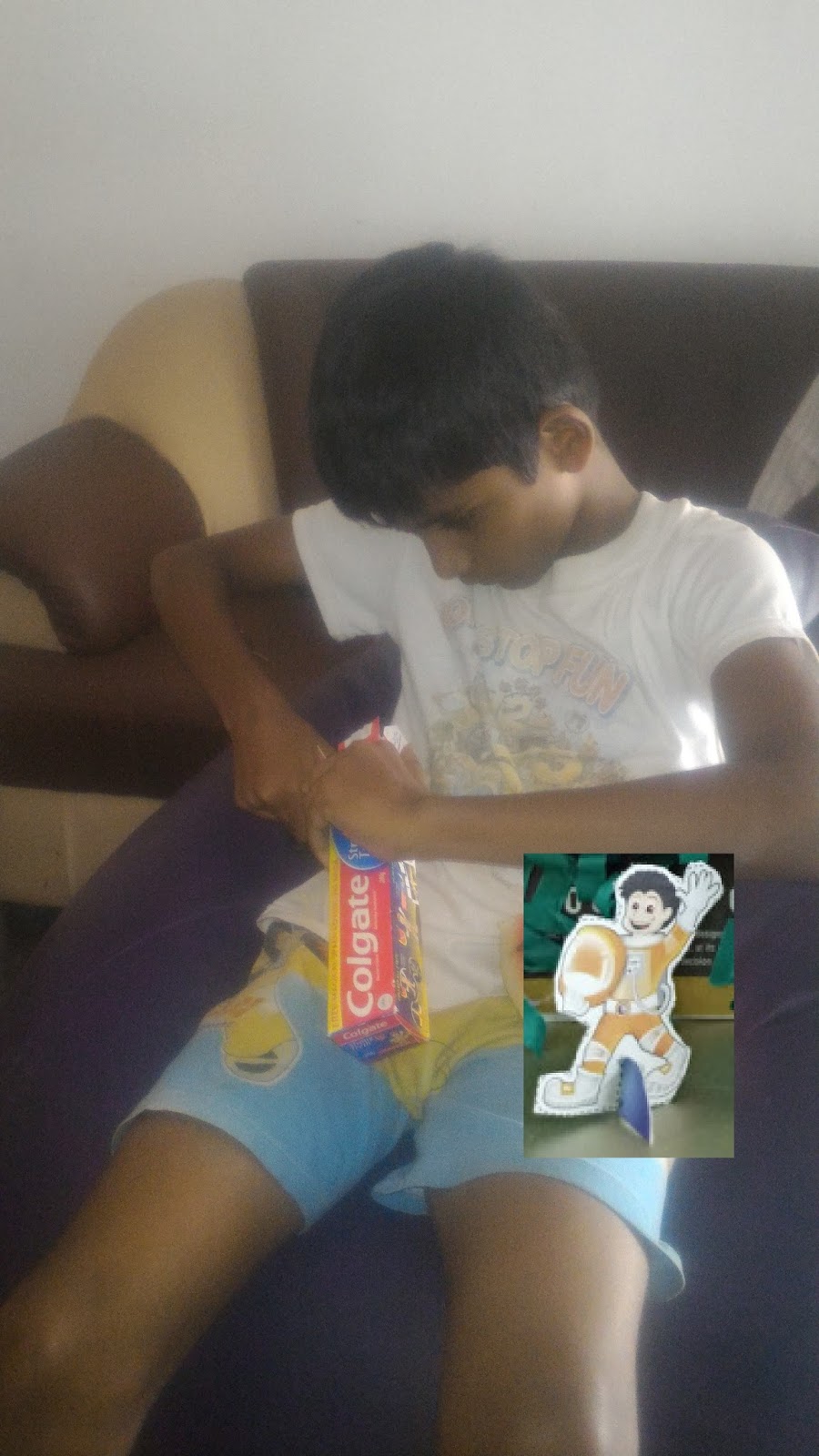 Finally, the wait to go to MARS is over! Yup you heard me right! Last week, I received 3 Colgate Packs from BlogAdda out of which one had the Space theme. I know my nephew Sanjith, who is keen to become an astronaut, would love this pack. As soon as I received this pack, I went to my Sister home. My nephew was super excited about this particular pack that had Space theme. I stated that I would give him the space themed Colgate pack only when he weaves a superb magical stories out of it. Kids are so creative these days and he came up with this beautiful story in just 5 minutes.