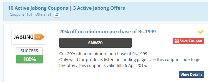 3. Success ratio: Success rate of the coupon is mentioned in the website which gives an idea and never waste our time. The coupons are updated very often.
