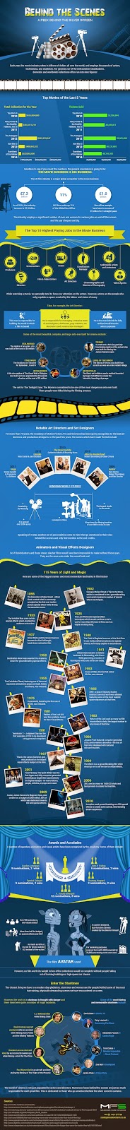 Take A Peek Behind The Silver Screen - A Guest post by Nancy WhiteMovie buffs are a genre unto themselves. For them, movie is a religion. Movie buffs are self-taught experts on the movie industry and can spout movie facts and figures at the drop of a hat. They can tell you which was the highest grossing movie five years ago and who won the Academy award for best actor in 1990. Want to know when the next installment of the popular series “Pirates of the Caribbean” will be released? Ask them; they already know. How many of the facts mentioned in the info graphic below did you know already?