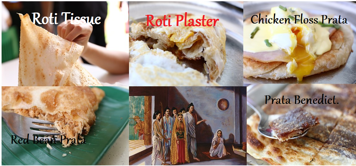 In Mahabharata, Kunti Devi instruct his five sons to share all the things among themselves. Pandas brings Draupadi to their home and without seeing the women Kunit says "share among yourself" and hence all the five end up marring same women Draupadi. All the people goes for honeymoon to Singapore. They heard a lot about Singapore cuisine they don’t want to order a single food and divide it among themselves. All wanted to try different flavours of the foods. At the same time, they don’t want to break their mother's order too. Hence they ordered the 5 interesting versions of Parta. Everybody relished and enjoyed the Roti Tissue, Roti Plaster , Chicken Floss Prata, Red Bean Prata, Prata Benedict. Their purpose was solved. They obeyed their mother order too and the same time, they fulfilled the wish of tasting different flavors.