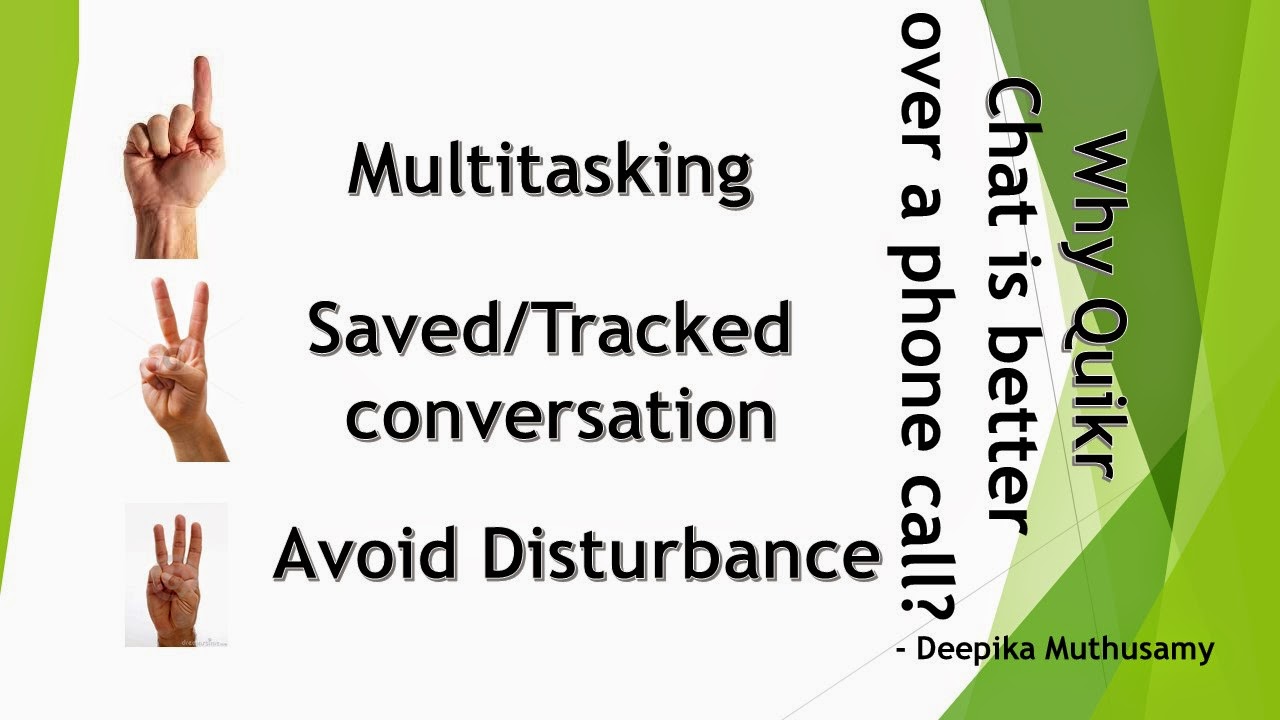 Avoids wrong perception: Sometimes, When I talk loudly in phone, people tend to conclude that I am aggressive. In chat, that problem will be rectified and if you add a happy smiley at the end, the deal ends smooth