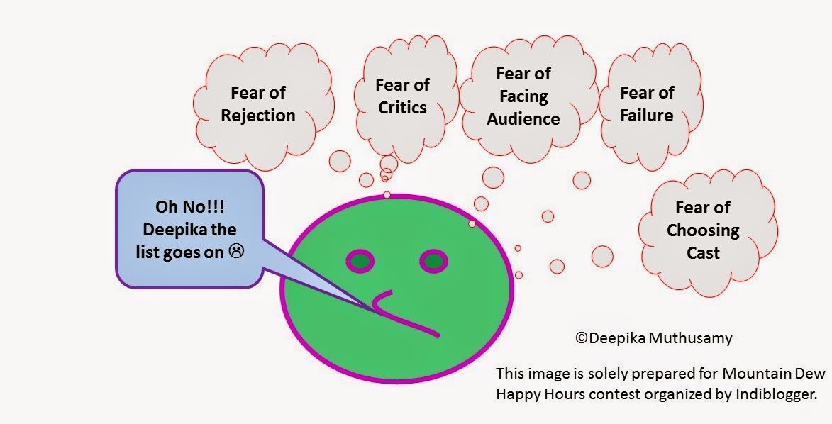 Fear or Rejection from PublishersFear of CriticsFear of facing audience during book launch,Fear of AppreciationFear of choosing cast and People for workFear of my English Language. Fear of Failure and the list goes on...