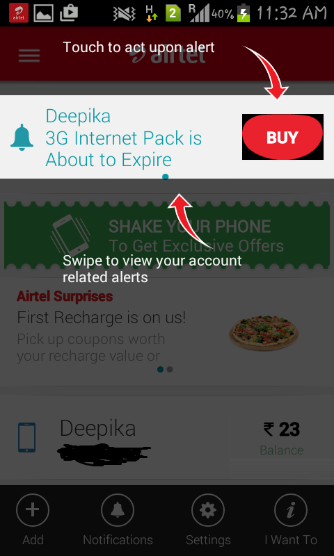 Push Notifications: I get instant notification about the music, sports and much more from the Airtel subscriber for the free of cost.