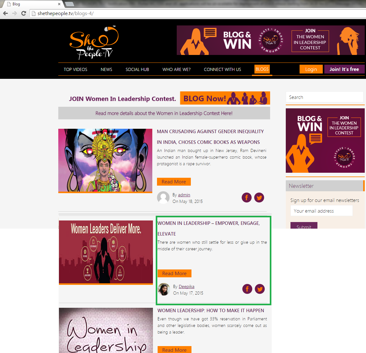 The link where you can participate: http://shethepeople.tv/leadership-contest/ You can read more about the contest in that link.