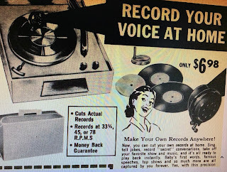 Advertisement from 1952I decided to scour old photo albums to find any pictures that might accompany the recording. Then with the magic of iMovie on my Macbook air, I created a five minute nostalgic trip back in time.