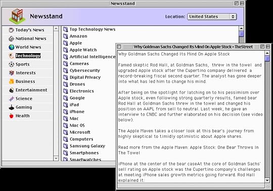 Newsstand, which is free (as in beer), was developed by Alex Robb… entirely on MacOS 9. Including the website! I love that dedication.
