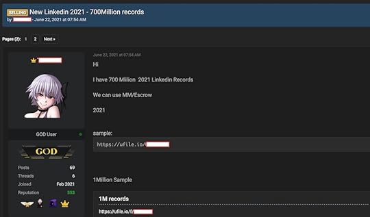 The hacker in question is listed as a “GOD user” on that particular hacker forum, and uses some sort of anime cartoon as an avatar. Because, of course he/she does.