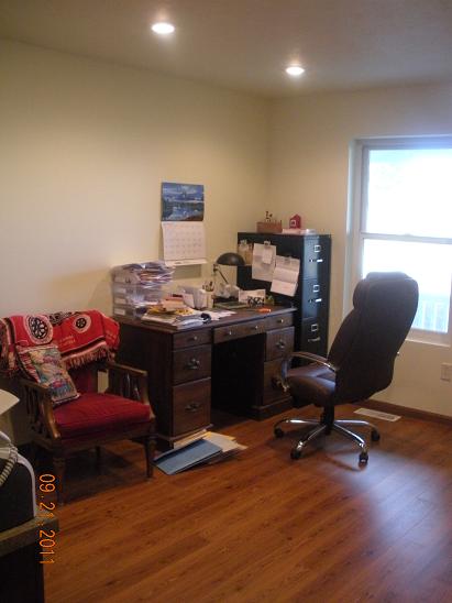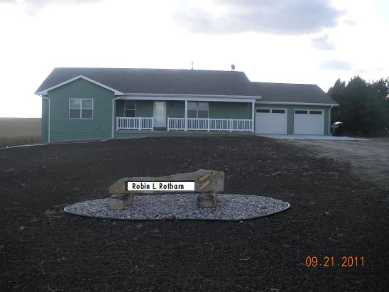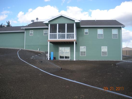1. The front of our house. Names have been changed to protect the innocent. *grin* Grass seed was just planted today and the new sprinklers are busy trying to germinate the seed.