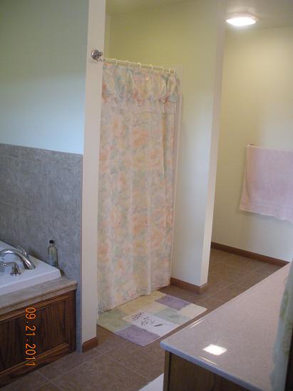 8. Our shower and, hidden beyond, is the nice high toilet.