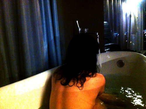 Today Scott and I both felt kind of sad. After our work and chores were over, I got a class of grapefruit Perrier and a piece of Nicorette and drew myself a bath. Scott sat beside the bathtub on the floor. He turned on the Brian Eno album “Music for Airports” on his laptop. He read me the last two chapters from The Sarah Book, which is almost completely finished. It was the best bath I have taken, and I have taken a lot of great baths. My husband is one of my male exceptions. I’m so proud of my big-dreaming genius.