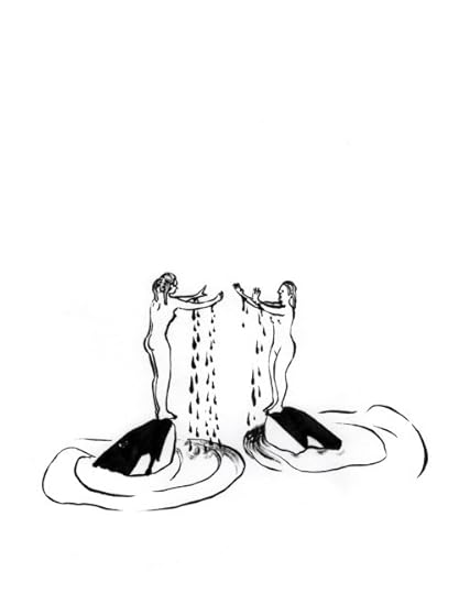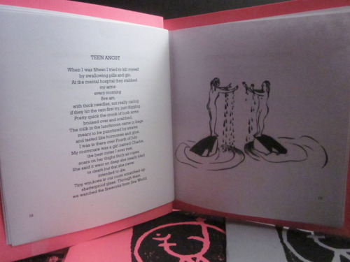 This is my favorite image from julietescoria‘s collection of poems Witch Babies. I think it is Juliet’s favorite, too. The Poem was called Team Angst and was about two girls in a mental hospital and also scar envy. There is a little reference at the end to sea world so Juliet asked me to draw a Shamu even though there aren’t any Shamu’s in the poem. This, I felt, gave me the creative License to do whatever the fuck I wanted.