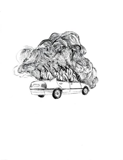 This is an illustration for julietescoria‘s poem Handle With Care which is about, like, not really doing that. It has a fire and a car in it, though not as the same image. But fuck it. I am a rebel and I do what I want.