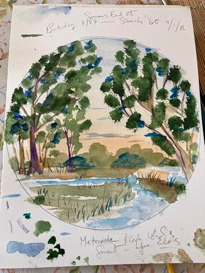 For me, as a child and later as an adult, the intense piney beauty of the setting, the undulating carpet of stars flowing below the Big Dipper down to the wooded horizon, the sunset blazing out as if fires had been banked just below the edge of the world, the smells of newly mown grass and the cool moss under the pine trees over by the rock shaped like a ship where my cousins and I played pirate, made the murmur of adult lamentations comforting and summery.