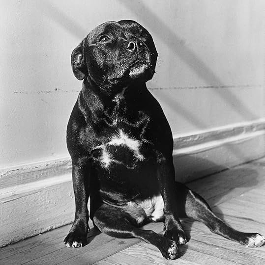 The black dog has some white on its muzzle. People love to point out white hair on dogs like they’ve sleuthed the incredible fact of dogs aging. This is such a good dog. I’ve pasted these two up in the kitchen. Moyra’s Water Print 1 is immersive and even a little hypnotic next to Clarissa Dalrymple’s dog, Kirsten. Clarissa was or is hot. She would have a good dog. Moyra’s water is painterly.