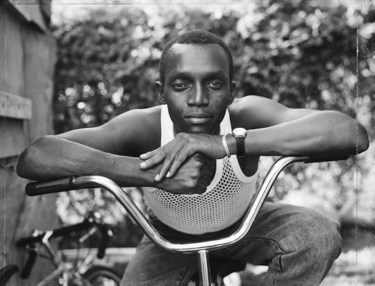 Dawoud Bey, A Young Man Resting on an Exercise Bike, Amityville, NY, 1988, inkjet print, 30 x 40″. © Dawoud Bey and courtesy of the artist, Sean Kelly Gallery, Stephen Daiter Gallery, and Rena Bransten Gallery.