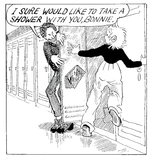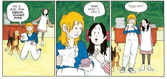 Bonnie and Pepsi are obsessed with sex, but they’re not here for the male gaze. Their desire is frank and straightforward and more than a little demented, and it’s depicted with a bracing honesty that feels less like a political statement and more like Flenniken is reporting from the front lines with no filter, no safety net, and no intention of telling anything but the truth. Trots and Bonnie ran into the late eighties, but it was born from a seventies worldview, a decadent, anything-goes carnival where thirteen wouldn’t get you twenty. The hangover from this era was vicious and the societal course-correction necessary, but the importance of hearing from girls of the era rather than from the guys who liked to ball girls of the era cannot be emphasized enough. Bonnie isn’t masturbating on the toilet because she wants you to watch. She’s doing it because her body belongs to her and she’s horny as fuck.
