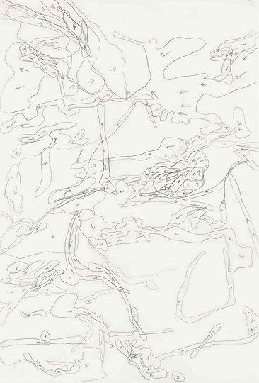 The cubist shards, moody ink washes, and spectacular arrays of breathless line work describe a puncture in time, a fragmented moment in which the present seems to leap forward in an instant. This existential doom is somehow elegant, as when Smithson, flying above his Spiral Jetty suspended in the Great Salt Lake, observes,