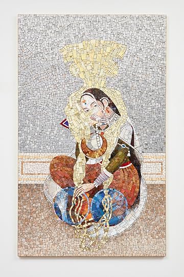 Shahzia Sikander, The Perennial Gaze, 2018, glass mosaic mounted on plywood in brass frame, 70 1/4 x 43 1/4″. © Shahzia Sikander. Photo: Jason Wyche. Courtesy of Sean Kelly, New York.