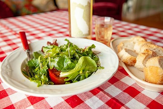 To serve the salad, toss all the greens together with the tomato and dressing to taste. Serve at the end of the meal, “after the main course but before dessert,” Lewis says. “I like to put a good goat cheese and bread on the table, too, and perhaps open another bottle of wine.”