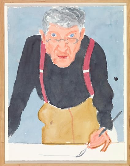 David Hockney, Self Portrait with Red Braces, 2003, watercolor on paper, 24″ x 18 1/8″. © David Hockney. Photo: Richard Schmidt.