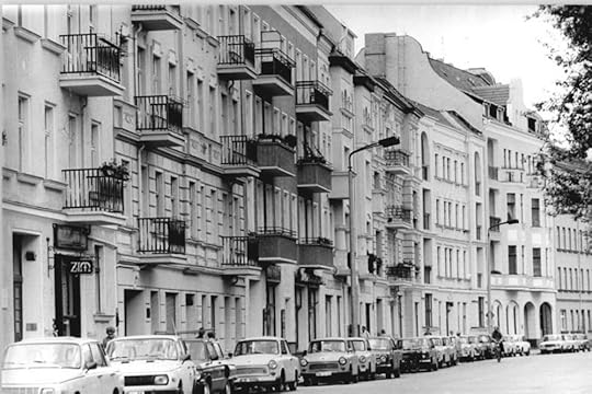 Shortly before I start school, we move to Leipziger Strasse 47. A boxy pair of blue-and-white high-rises, ours is twenty-three stories tall, the one next door is twenty-six; these are the first buildings to be finished along the grand socialist avenue that leads to Potsdamer Platz, at least that’s how it would be described today. But during my childhood Leipziger Strasse doesn’t lead to Potsdamer Platz, instead it comes to an abrupt end just shy of Potsdamer Platz, at the point where the wall turns a corner. That means that the West is there to the left of our building, and the West is also there farther along, where the wall turns the corner, just past the end of the line for bus number 32. I learned about that on Wollank Strasse, in the Berlin neighborhood of Pankow. But there are other things that I didn’t learn in Pankow. In Leipziger Strasse, when we move in, there’s just the pair of buildings where we live, a supermarket, a school, and two apartment buildings that were seriously damaged in the war, nothing else. In Pankow, I learned to ride a bike in the public park, I fed ducks in the palace gardens, I dragged my feet through the autumn leaves when we went for Sunday strolls in the Schönholzer Heide. Now there’s nothing around us but mud. My walk to school leads through the mud of the giant construction site, my walk to the supermarket leads through the mud of the giant construction site, my walk to piano lessons leads through the mud of the giant construction site. In the mud, I find a twenty-mark bill, it’s green. If I hadn’t found that bill in the mud—a miracle!—I surely would have forgotten by now what a twenty-mark bill looked like back then. Our Sunday strolls take us down the smaller streets that branch off from Friedrich Strasse to the west, since that’s the only place with asphalt where I can roller-skate, the asphalt is bright gray and smooth, and we can walk down the middle of the street, since there isn’t any traffic there. What business would a driver have on a dead-end street?