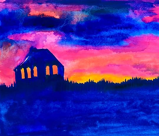 I was at an odd seaside motel in New Jersey with my wife, Rae Buleri. She was painting watercolors on the beach, I was sitting next to her, writing stories on my cell phone. She painted this house all lit up at sunset, the windows glowing gold, and I thought it looked like it was on fire. The painting blew me away, and I started writing a story about a couple who burn their house down. Something about the neons Rae used had so much energy and joy. So I tried to make “Violets” have that same feeling. Also, of course, it’s no mistake that the characters in the story also decide to burn down a motel. All I had to do was look over the dune and there it was right behind us.