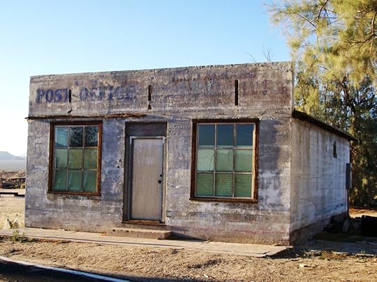 I’ve long been fascinated with a photo of an abandoned post office in the middle of the Mojave. The blue POST on the small building, the faded OFFICE. The two windows with blinds sun-stained to teal. The wooden door with 90820 painted in red above it. Who was the last person to pull that door closed, to check the lock and make sure?