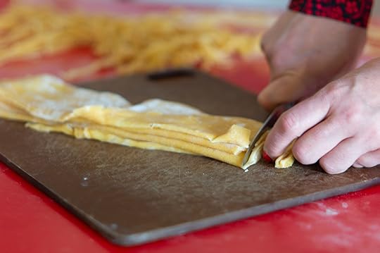 If you fold your homemade pasta like an accordion, as opposed to rolling it, it’s less likely to stick together.