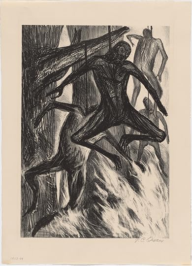 The psychosis apparent to José Clemente Orozco was not unfamiliar territory for the great muralist, who specialized in social commentary and the history of the Americas and thus was not a stranger to violence in all its extremes. The plight of the powerless is universal, the powerless who are aware of their human rights—they are the New Negro. Our old twentieth century ushered in new revolutions of the spirit and, with them, new forms of suppression, new aesthetic geometries, mass-produced graphic arts to meet mass graphic violence. Impassioned and dispassionate, using colorless and raw lithographic crayon—the tool of the social-realist painter—the work is ready for reproduction, ready to supplement the voice of the imperiled and annihilated.