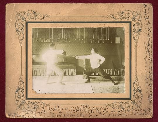 Alfred Jarry (at right) fencing with Félix Blaviel in Laval, 1906. The Robert J. and Linda Klieger Stillman Pataphysics Collection.