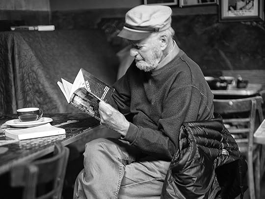 Lawrence Ferlinghetti at Caffe Trieste, 2012. Photo: Christopher Michel (CC BY-SA 4.0 (https://creativecommons.org/licenses/...)). Via Wikimedia Commons.