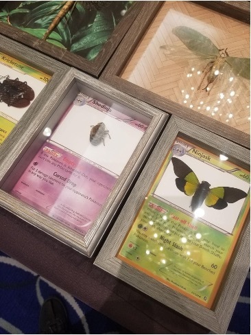 The best use of Pokemon intellectual property was a taxidermist selling shadowboxes of Pokemon cards with real bugs glued inside of them, standing in as the creatures. A “Leavanny” featured a walking leaf bug, one of the most immaculately camouflaged species in the world. A cicada shell from a poorly-timed breeding cycle benefited from the rebrand as a “Shedinja.” Its final form was the green-and-yellow winged “Ninjask,” fanned out in its fearful symmetry.