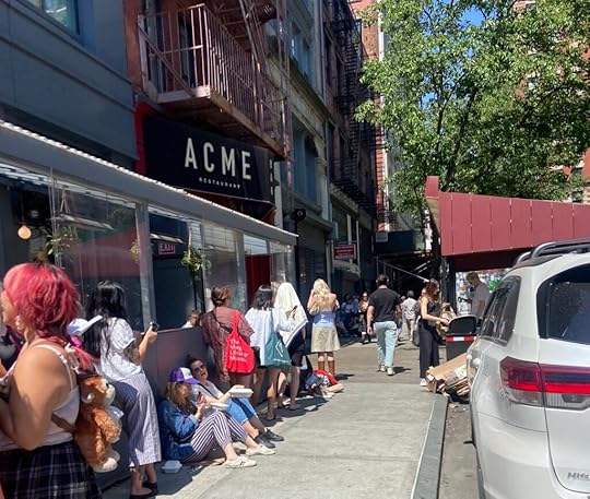 The line was still incredibly long—only forty-five minutes had passed. A frantic British woman in hangover sunglasses came up to me and asked if I thought there would still be clothing if she got in line now. I said probably not. What I wanted to say was: Save yourself babe, it is really crazy in there.