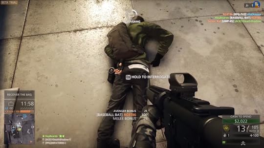 As a cop in Hardline, you’re tasked with preventing robberies and rescuing hostages, which often means shooting all the criminals until they’re dead. (The gentlest thing you can do is arrest them.) The game also enables players to take the role of the criminals, and perhaps the more troubling aspect of Hardline is that this experience is identical to playing as the police: both “the good guys” and “the bad guys” see the world through crosshairs. The best players shoot first, and shoot from behind.