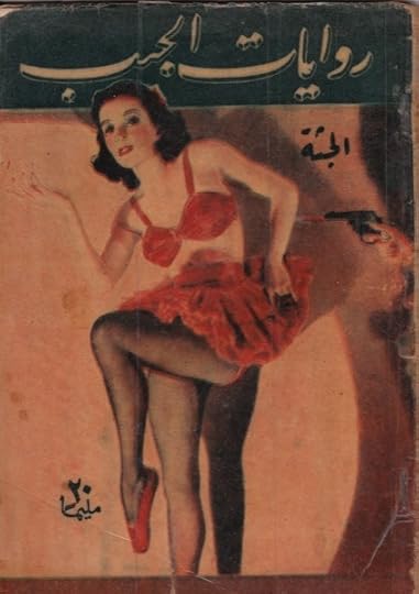 From the turn of the nineteenth century to the 1940s, Egyptian readers “had been accustomed to a steady stream of detective pulp fiction,” writes Colla. The remains of that vast canon are still strewn across the country. On a recent trip to Alexandria, I watched a hardened bookseller, a cigarette dangling from his lip, unload three grimy suitcases packed with English thrillers: The Man in the Gray Flannel Suit, The Kiss-off, Casino Royale, House Dick, and dozens more. At the next stall, a table offered Arabic titles, with monikers like The Corpse, Floozy from Paris, Secret of Radium, and Lust for Murder. Each cover is more craven than the last: gun-slinging babes, gambling sexpots, smoking revolvers. The back covers offer red-hot teasers. “A police story of fantastic events … ” “The life of a French prostitute … ”