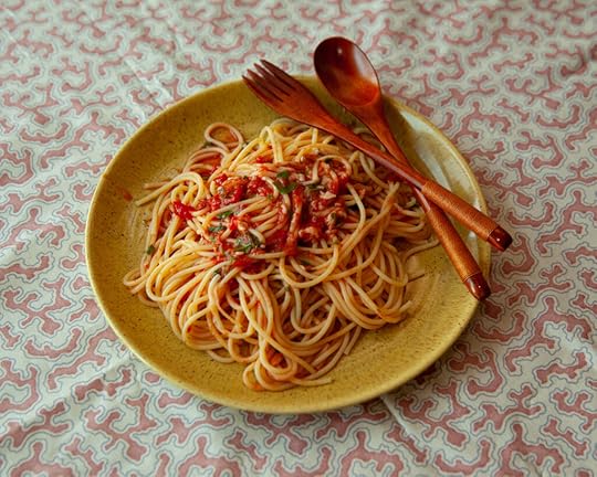 Ephron describes linguine alla cecca as a “hot pasta with a cold tomato and basil sauce” that’s “so light and delicate that it’s almost like eating a salad.” Photograph by Erica MacLean.
