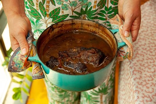 Others, like Lillian Hellman’s pot roast, which asks for “low-rent ingredients” like a can of cream of mushroom soup and a packet of dried French onion soup, seemed less so. There were also a few truly ominous outliers: a bread pudding calling for what seemed like too much of two powerful flavorings, nutmeg and vanilla; and a casserole of pears and lima beans from Rachel’s mother. This appalling dish is presented as an example of Rachel’s mother’s casual, irreverent attitude towards cooking, emblematic of her first-wave feminism, which Rachel, to some degree, reacts against. “My mother was a good recreational cook, but what she basically believed about cooking was that if you worked hard and prospered, someone else would do it for you,” Rachel says. She chooses a different path, one which does not include a pear-and-lima-bean casserole.