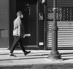 I walk outside and see a young blond man in a stretchy gray tracksuit walking his dog while loudly talking about his body on the phone, and then he slows down to peer into his screen,