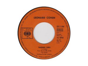 When Leonard Cohen starts singing “Passing Through” on his 1973 Live Songs album, he sounds tentative, like a child who’s been asked to sing a song he learned at school in front of a party of adults. “I saw Jesus on the cross, on a hill called calvary … ” On the record his voice is faint—I’ve spent twenty years turning up the volume—and he sings so casually that it sounds like he really might have seen the crucified Christ, and asked him, deadpan and impertinent, “Do you hate mankind, for what he’s done to you?” Jesus has a pretty mellow, Jesus-like response, delivered in Cohen’s increasingly confident baritone: “He said ‘Talk of love not hate—things to do, it’s getting late.’” He is, like the rest of the Biblical and historical characters Cohen will encounter throughout the song, only passing through. Compare Cohen’s line readings to the declamatory, bugged-out delivery that Dylan gives to the opening lines of his bible pastiche “Highway 61 Revisited.” Cohen is calm, weary, a little resigned; Dylan is providing color commentary at the Belmont Stakes.