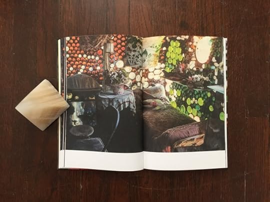 She left it, finally, in 1982, at the age of eighty-six, and died in 1988. But the site, though in disrepair, remains and is protected as a historical landmark. Hofer’s book—an elegant intervention and homage—includes texts, color photographs of the Bottle Village, and a facsimile edition of the essay Prisbrey wrote about her creation in 1960, which she published as a pamphlet and gave (or mailed) to anyone who asked. Reading Prisbrey’s charming, conversational descriptions of her village, you get a sense of what it might’ve been like to tour it with her, and how important that social aspect was to the project. “Oh, this is an interesting place to see,” she says, “and you hear such funny things, too.”