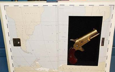 When Indiana librarians opened a donated copy of Robert Stone’s Outerbridge Reach, they found it contained an Arma San Marco .31-caliber, a single-shot black-powder handgun. Reported reaction: “Oh, my.”