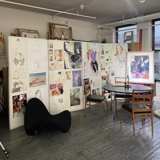 Billy Sullivan’s studio, a fifth-floor walk-up on the Bowery, has a comfortable, elegant dishevelment. Hanging all around the space are some of the brightly colored figurative paintings he has been making since the seventies: portraits of his friends, lovers, and other long-term muses, rendered in loose, dynamic brushstrokes and from close, pointedly subjective angles. A still life of a bouquet and two coffee cups is an outlier among the faces. Near a work in progress on the wall is a table with a color-coded array of pastels, each wrapped in its paper label (mostly the artisan Diane Townsend, with a few older sticks from the French brand Sennelier); a metal cart bears tubes of oil paint, and reels of film negatives are tucked away on low shelves. Tacked up on a set of folding screens is a display of Sullivan’s photographs and sketches, and next to that is a burgundy chaise longue adorned with a faux animal pelt. When I visited on an overcast afternoon in December, Sullivan had set out a bowl with grapes and a fig on the kitchen island, where he pulled an espresso for himself and poured a glass of water for me.
