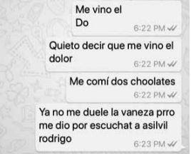 At a certain point I discovered it was dark out and that I could move with some degree of normalcy. The first-aid class must have been about to end, or maybe it was already over. I considered the possibility of doing nothing. I almost never consider that possibility. Instead, I decided to take some little excursions between the bedroom and the living room—I didn’t even think about the Charly García song, “Yendo de la cama al living”—practicing for my expedition to the house next door. I went on a lot of excursions. Judging by the time of the next message, which I sent to Jazmina immediately before going outside, I practiced for over an hour: