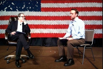 Here’s how you might fall in love with the Supreme Court: sitting in a dark theater, watching two actors facing one another in desk chairs on a minimally dressed stage, reenacting an oral argument. This is Arguendo, a new play from Elevator Repair Service, still being developed in workshop but presented in four early performances on May 17 and 18 at a sixty-seat black-box theater in Brooklyn. Elevator Repair Service is best known for Gatz, a theatrical endurance test in which F. Scott Fitzgerald’s The Great Gatsby is performed in its entirety over the course of six hours. Arguendo, only forty minutes long in its present incarnation, rewards a different kind of persistence. It challenges its audience to enter in the middle of a conversation—after written briefs are filed but before an opinion has been issued—ignorant of the law, of legal language, and of the justices. We are asked to ride out that ignorance with the promise that it will yield to wisdom and delight.
