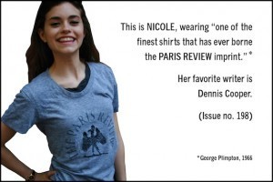 In celebration of its two-hundredth issue, The Paris Review is proud to present the Winter 1966 T-shirt. Modeled on a nifty shirt that we discovered on the back cover of issue 36, the design is George Plimpton’s own. As he stated in that ad, it’s “the sort of once in a very rare while shirt that makes an editor proud to do his job.”