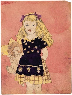 Henry Darger, Study of a Vivian Girl with Doll, mid-twentieth century, watercolor, carbon tracing, and pencil on paper, 12 x 9 inches. Courtesy of the American Folk Art Museum.