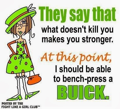 Fortunately, my frantic schedule did NOT kill me. In fact, it has made me stronger . Strong enough to benchpress a Buick? NO, maybe not.