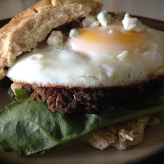 Combine mushrooms and black beans in a food processor and run until the mixture is thick, but still chunky. Mix in quick oats, egg, and garlic cloves. Stir in blue cheese crumbles and season to taste. (I’m a simple girl, so I use fresh black pepper.) Separate into six equal-sized portions and form into patties. Cook in skillet over medium heat on both sizes. Serve as desired.