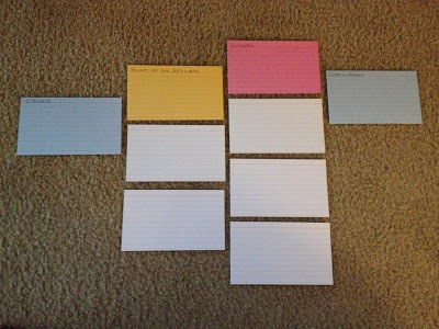 With a better idea of the main plot elements and themes of this story, I used the Ten-Scene tool to shape the major plot arc of the story. I recently reorganized my desk and stumbled upon quite the collection of index cards, which I used to help me visualize the flow and ebb of this book's story.