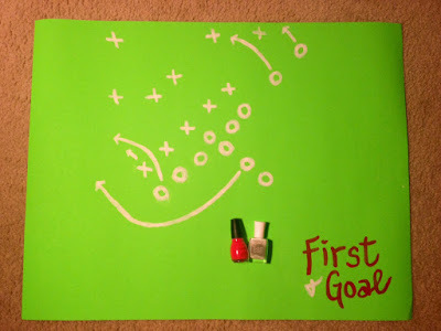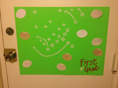 For decorations, I made a sign that echos the cover of my book. I asked guests to help me complete it by writing one of their favorite football memories on a football-shaped piece of paper, which we attached to the sign.